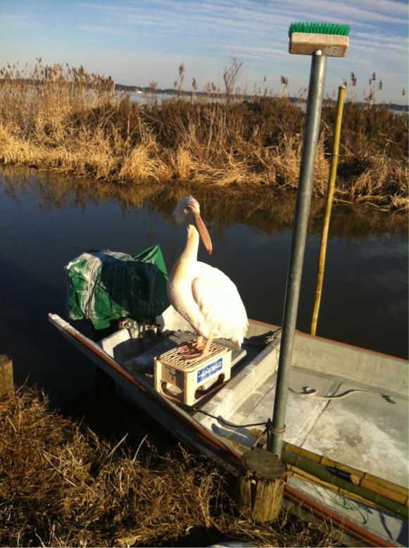 ※帰って調べたら「モモイロペリカン」という鳥のようで、印旛沼の人気者らしい。知らなかったーw