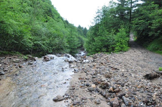 しばらく沢沿いの暗い森道を歩くため、ひんやりしている。