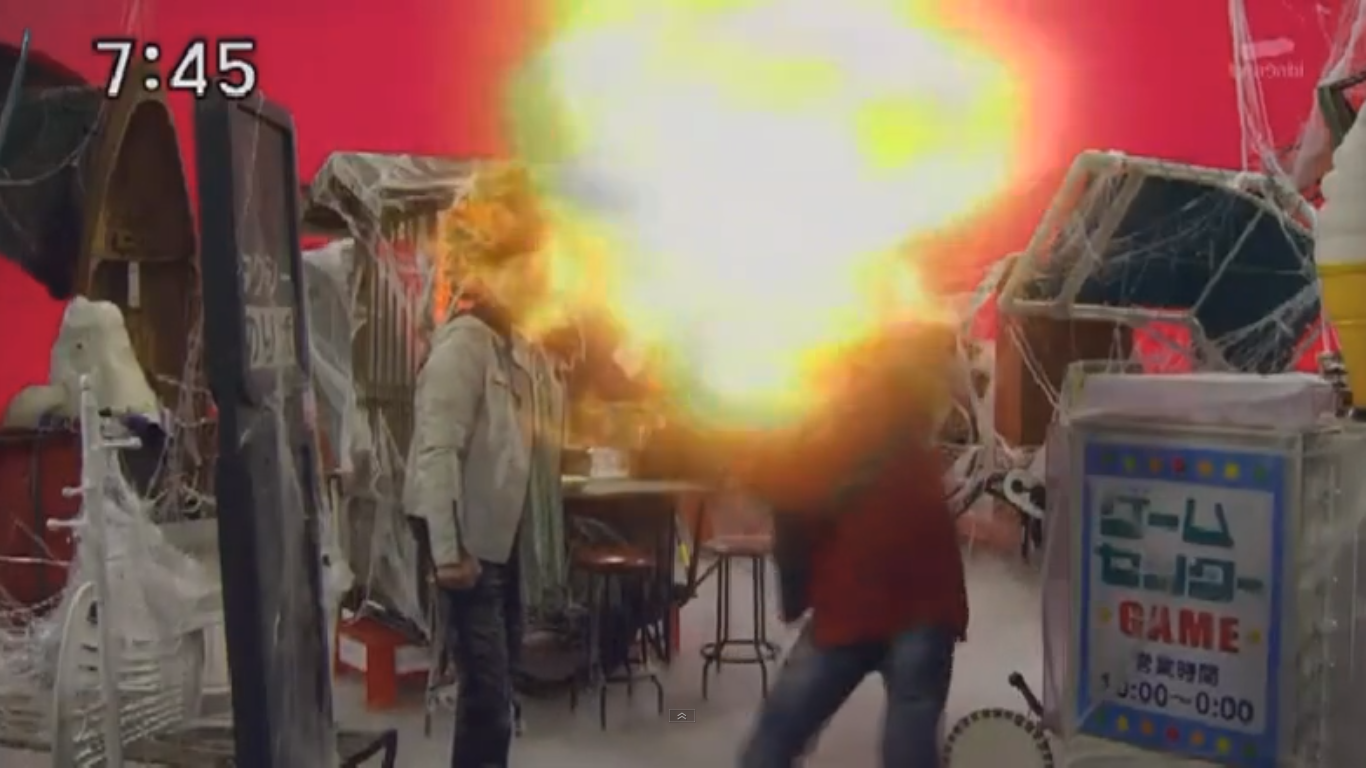 青ニンジャーがなんなくこなす火炎の術。